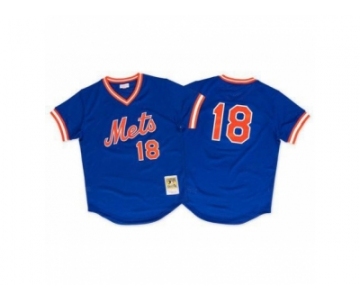 Men's Mitchell and Ness 1986 New York Mets #18 Darryl Strawberry Replica Royal Blue Throwback MLB Jersey