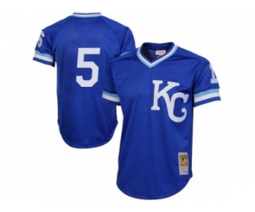 Your Position: Home>MLB Jerseys>City Royals>Men>Men's Mitchell and Ness 1989 Kansas City Royals #5 George Brett Authentic Royal Blue Throwback MLB Jersey
