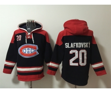 Men's Montreal Canadiens #20 Juraj Slafkovsky Navy Red Lace-Up Pullover Hoodie