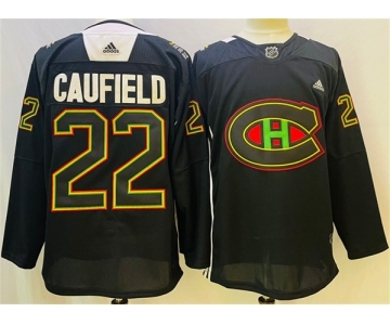 Men's Montreal Canadiens #22 Cole Caufield 2022 Black Warm Up History Night Stitched Jersey