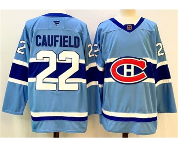 Men's Montreal Canadiens #22 Cole Caufield Blue 2024-25 Reverse Retro Stitched Jersey