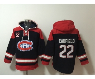 Men's Montreal Canadiens #22 Cole Caufield Navy Red Lace-Up Pullover Hoodie