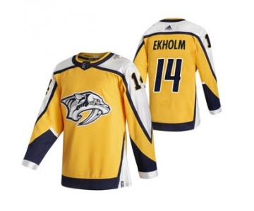 Men's Nashville Predators #14 Mattias Ekholm Yellow 2020-21 Reverse Retro Alternate Hockey Jersey