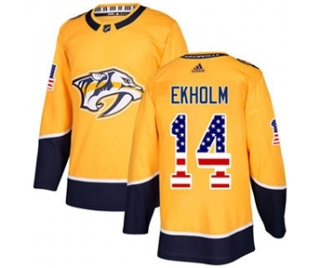 Men's Nashville Predators #14 Mattias Ekholm Yellow Home USA Flag Stitched Hockey Jersey