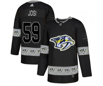 Men's Nashville Predators #59 Roman Josi Authentic Black Team Logo Fashion Hockey Jersey