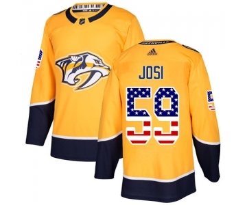 Men's Nashville Predators #59 Roman Josi Authentic Gold USA Flag Fashion Hockey Jersey