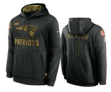 Men's New England Patriots #1 Cam Newton Black 2020 Salute To Service Sideline Performance Pullover Hoodie