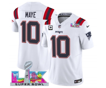 Men's New England Patriots #10 Drake Maye White 2025 F.U.S.E. Super Bowl LX Patch And 1-Star C Patch Vapor Limited Football Stitched Jersey