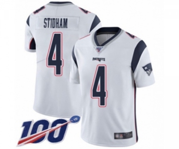 Men's New England Patriots #4 Jarrett Stidham White Vapor Untouchable Limited Player 100th Season Football Jersey
