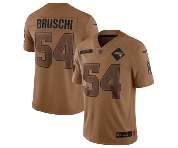 Men's New England Patriots #54 Tedy Bruschi 2023 Brown Salute To Service Limited Football Stitched Jersey
