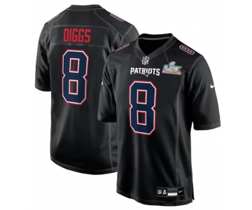 Men's New England Patriots #8 Stefon Diggs Black 2025 Super Bowl LX Patch Carbon Fashion Stitched Game Jersey