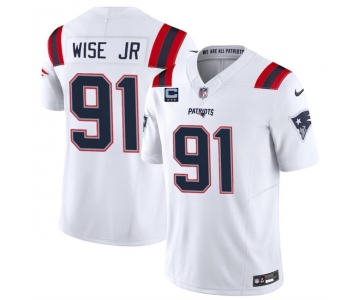 Men's New England Patriots #91 Deatrich Wise Jr White F.U.S.E. With 3-Star C Patch Vapor Limited Stitched Football Jersey