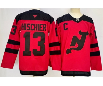 Men's New Jersey Devils #13 Nico Hischier Red 2024-25 With C Patch Stitched Hockey Jersey