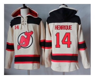 Men's New Jersey Devils #14 Adam Henrique Cream Sawyer Hooded Sweatshirt Stitched NHL Jersey