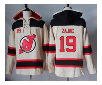 Men's New Jersey Devils #19 Travis Zajac Cream Sawyer Hooded Sweatshirt Stitched NHL Jersey