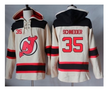 Men's New Jersey Devils #35 Cory Schneider Cream Sawyer Hooded Sweatshirt Stitched NHL Jersey