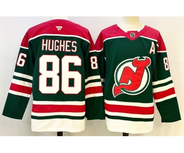 Men's New Jersey Devils #86 Jack Hughes Green Red 2024-25 With A Patch Stitched Hockey Jersey