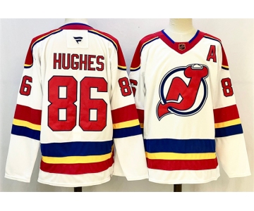 Men's New Jersey Devils #86 Jack Hughes White Red 2024-25 With A Patch Stitched Hockey Jersey