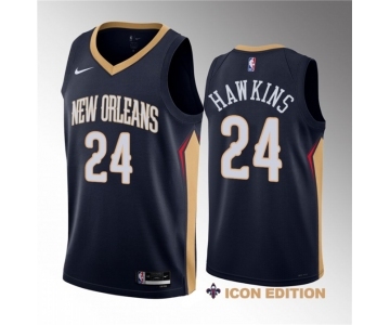 Men's New Orleans Pelicans #24 Jordan Hawkins Navy 2023 Draft Icon Edition Stitched Basketball Jersey