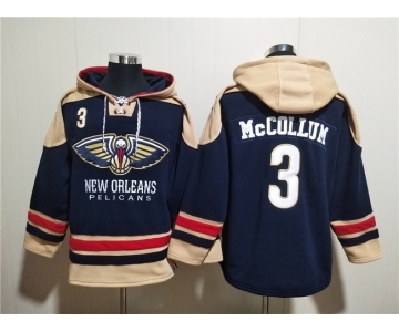 Men's New Orleans Pelicans #3 CJ McCollum Navy Ageless Must-Have Lace-Up Pullover Hoodie