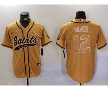Men's New Orleans Saints #12 Chris Olave Gold Cool Base Stitched Baseball Jersey