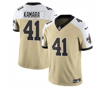 Men's New Orleans Saints #41 Alvin Kamara Gold White Alternate 2025 F.U.S.E. Vapor Limited Football Stitched Jersey