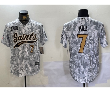 Men's New Orleans Saints #7 Taysom Hill Arctic Camo 2024 Salute to Service Stitched Baseball Jerseys