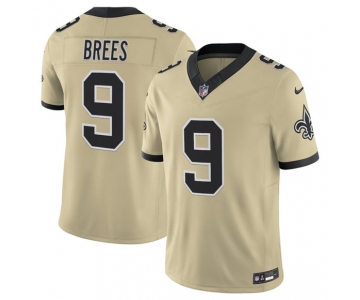 Men's New Orleans Saints #9 Drew Brees Gold 2025 F.U.S.E. Alternate Vapor Limited Football Stitched Jersey