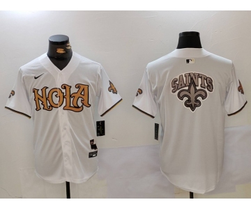 Men's New Orleans Saints Blank White Nola Baseball Jerseys