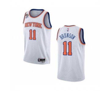 Men's New Yok Knicks #11 Jalen Brunson White With NO.6 Stitched Basketball Jersey