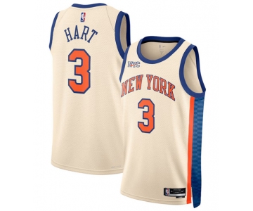 Men's New Yok Knicks #3 Josh Hart Cream 2025-26 City Edition Swingman Stitched Basketball Jersey