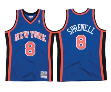 Men's New Yok Knicks #8 Latrell Sprewell Blue Mitchell & Ness 98-99 Road Swingman Stitched Jersey