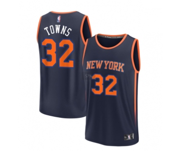Men's New Yok Knicks Fanatics #32 Towns Navy Custom Fast Break Jersey-Statement Edition