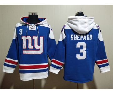 Men's New York Giants #3 Sterling Shepard Blue Lace-Up Pullover Hoodie