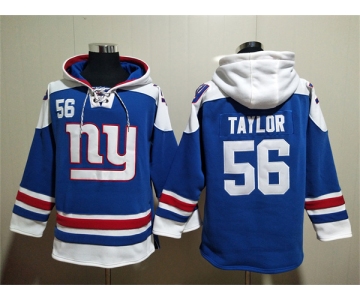 Men's New York Giants #56 Lawrence Taylor Blue Lace-Up Pullover Hoodie