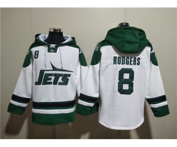 Men's New York Jets #8 Aaron Rodgers White Ageless Must-Have Lace-Up Pullover Hoodie