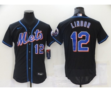 Men's New York Mets #12 Francisco Lindor Black Flex Base Stitched Jersey