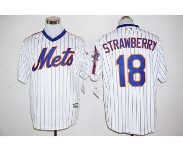 Men's New York Mets #18 Darryl Strawberry Majestic White With 25th Anniversary Patch Official Cool Base Player Jersey