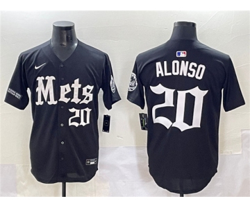 Men's New York Mets #20 Pete Alonso Black 'Gotham Gothic Edition' Vapor Premier Limited Stitched Baseball Jersey