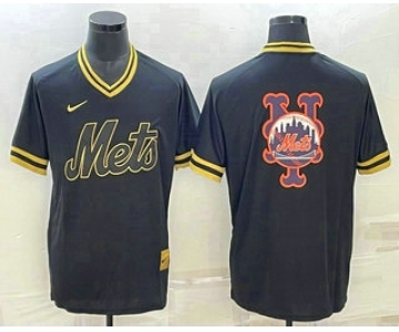 Men's New York Mets Big Logo Black Gold Nike Cooperstown Legend V Neck Jersey