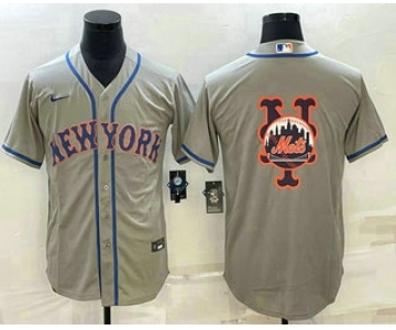 Men's New York Mets Big Logo Grey Cool Base Stitched Baseball Jerseys