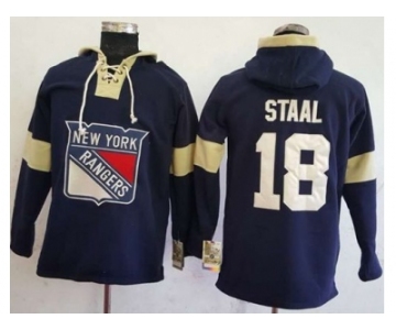 Men's New York Rangers #18 Marc Staal Navy Blue Pullover Hoodie Stitched NHL Jersey