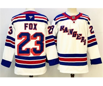 Men's New York Rangers #23 Adam Fox White 2024-25 Away Stitched Hockey Jersey