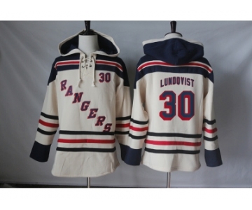 NHL New York Rangers #30 Henrik Lundqvist Cream Sawyer Hooded Sweatshirt Stitched jerseys