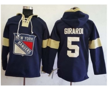 Men's New York Rangers #5 Dan Girardi Navy Blue Pullover Hoodie Stitched NHL Jersey