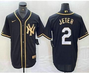 Men's New York Yankees #2 Derek Jeter Black Gold Cool Base Stitched Baseball Jersey