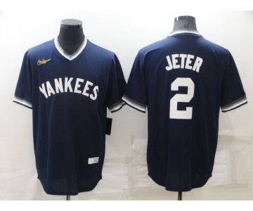 Men's New York Yankees #2 Derek Jeter Navy Blue Cooperstown Collection Stitched MLB Throwback Nike Jersey