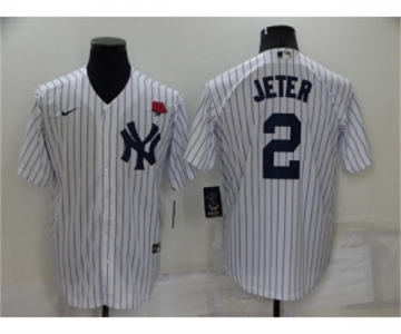 Men's New York Yankees #2 Derek Jeter White Cool Base Stitched Rose Baseball Jersey