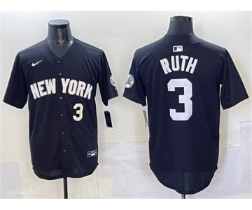 Men's New York Yankees #3 Babe Ruth Black Limited Stitched Baseball Jersey