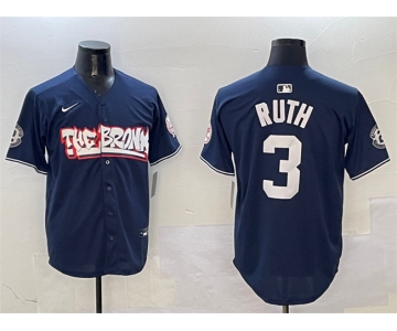 Men's New York Yankees #3 Babe Ruth Navy Bronx Graffiti Vapor Limited Stitched Baseball Jersey